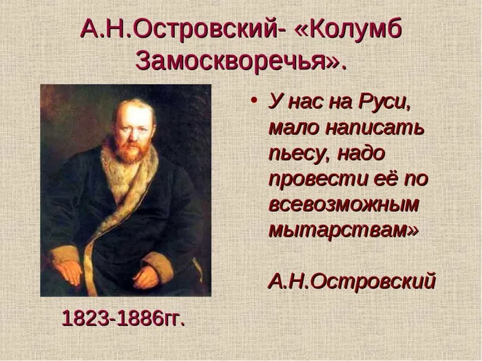 Библиотекарь городской библиотеки филиал № 12 Назина Н.И. приглашает читателей юношеского возраста на литературный час по пьесам А.Н. Островского «Свои люди, или рассказы о простых обывателях». На литературном часе еще раз обратим внимание на творчество Александра Николаевича Островского. Он привнес на сцену поэзию русской жизни, без него не было бы ни Малого театра, ни МХАТа как национальных театров страны. В конце литературного часа читателям рекомендуется чтение пьес А.Н. Островского .
