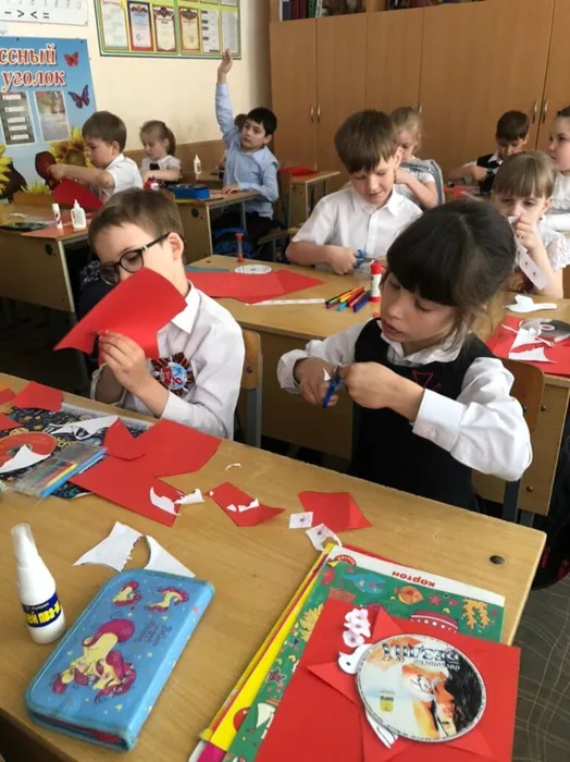 День Победы – самый любимый, самый главный праздник в нашей стране. Мы должны обязательно помнить – подобной страшной трагедии не должно повториться. Трудно придумать более трогательный знак внимания к ветеранам войны, чем праздничная открытка, сделанная руками детей. Он будет самым ценным подарком, а для ветеранов особенно. Библиотекарь городской детской библиотеки им. Симонова провела мастер - класс по изготовлению открытки к 9 мая. А изготовить такой замечательный подарок совсем несложно, и ученики 1 "А" класса МАОУ СОШ № 3 им. А. В. Кривцова нам это доказали. Молодцы ребята!